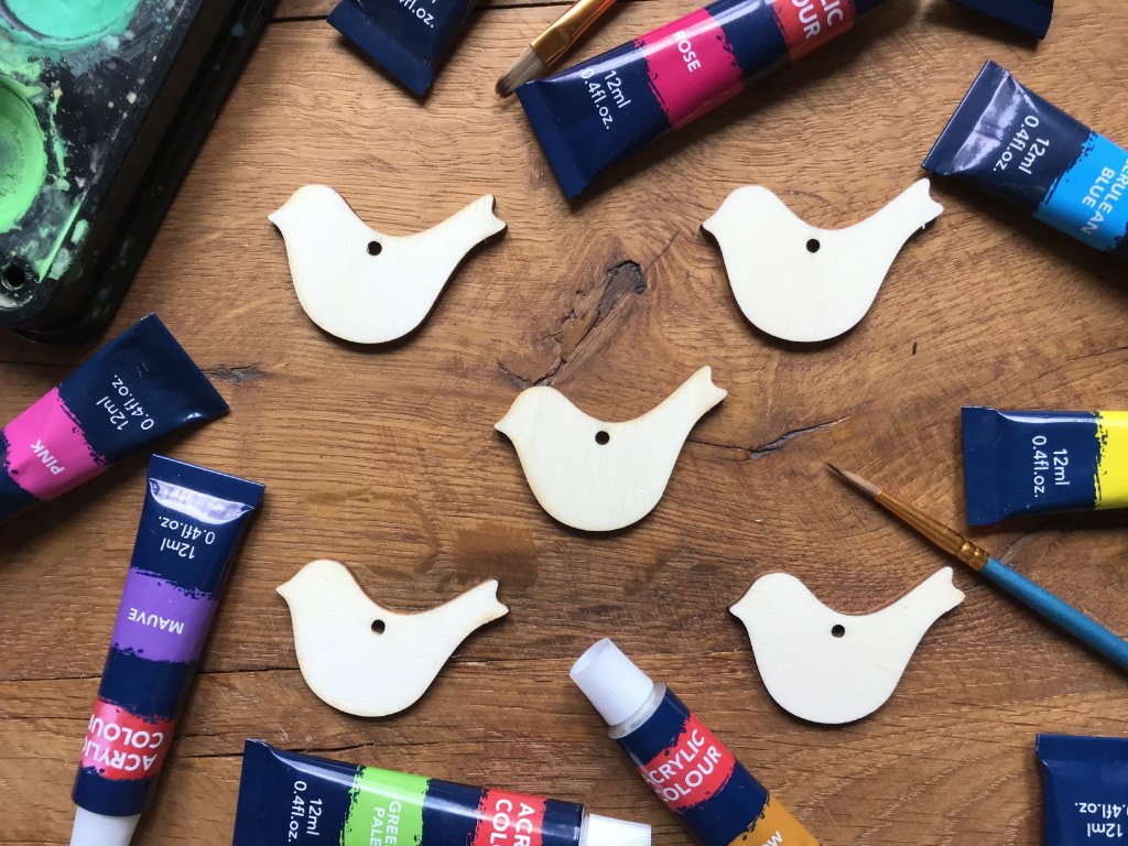 Dřevěné ptáčky využijete při kreativním tvoření s dětmi. Můžete je:
