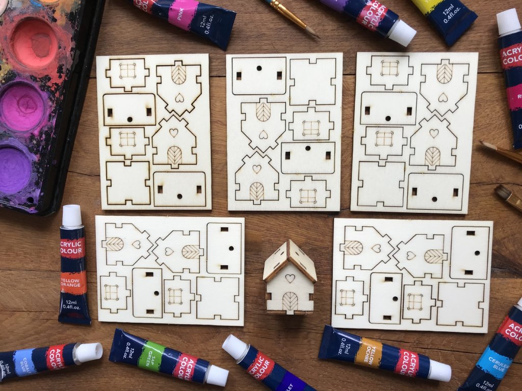 Domečky se dají snadno vyloupnout z destičky a rychle složit bez potřeby lepidla či dalších nástrojů.